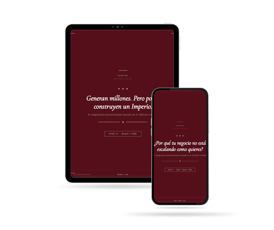Descubre qué está frenando el crecimiento de tu empresa con el Fempire CEO Audit — un diagnóstico estratégico basado en el método desarrollado tras trabajar con empresarias que generan entre $25K y $250K+ al mes.